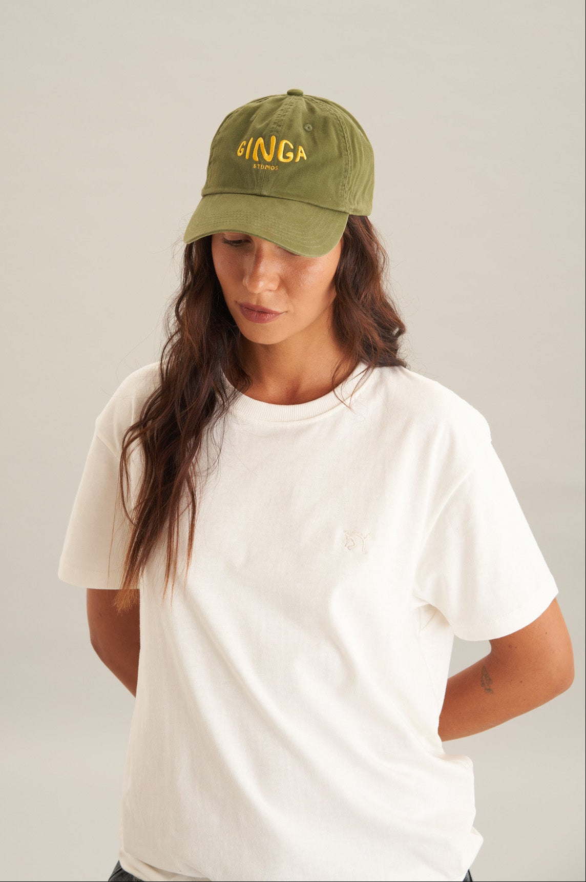 Confeccionado em sarja de algodão com fivela de metal ajustável.