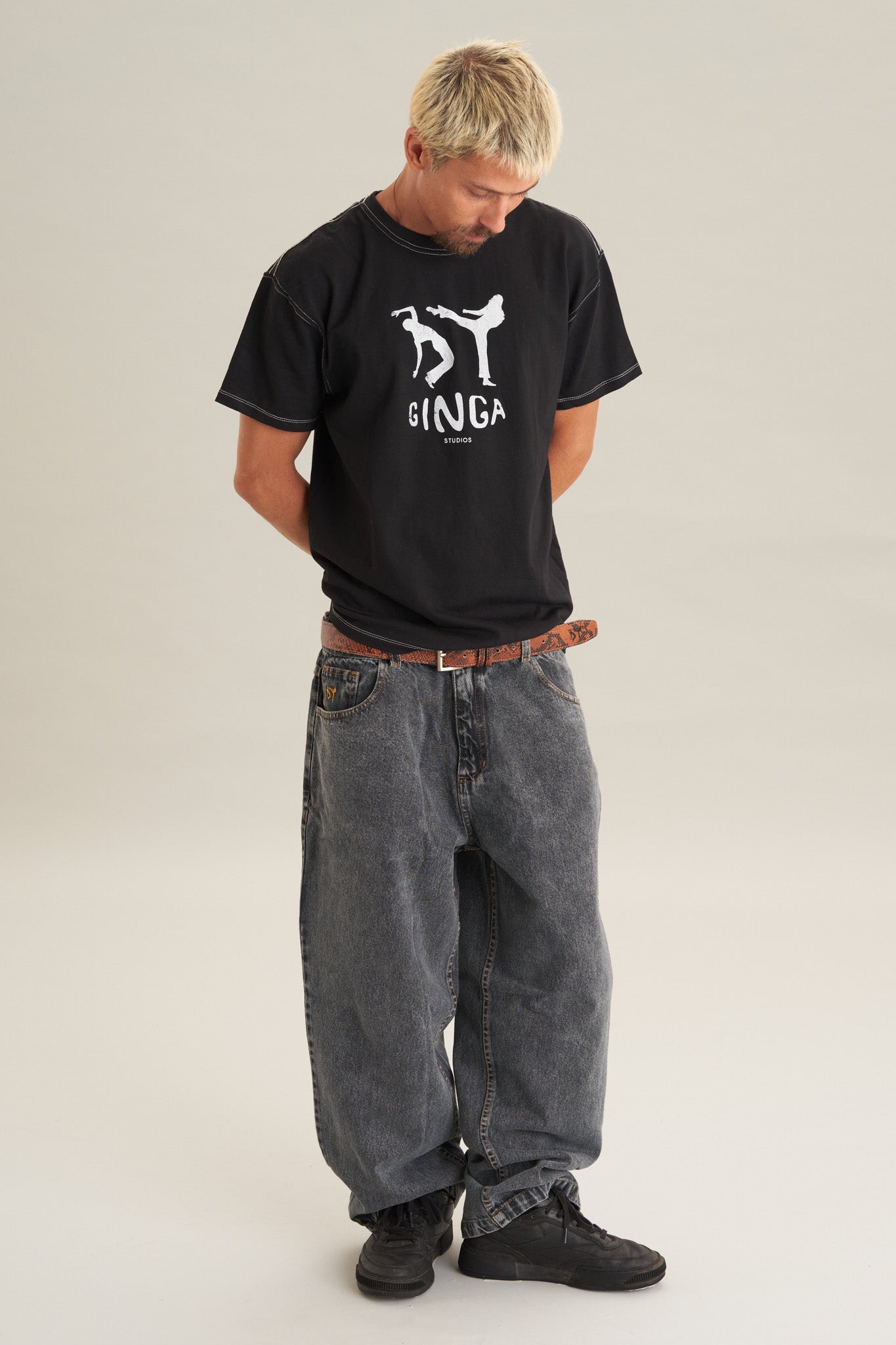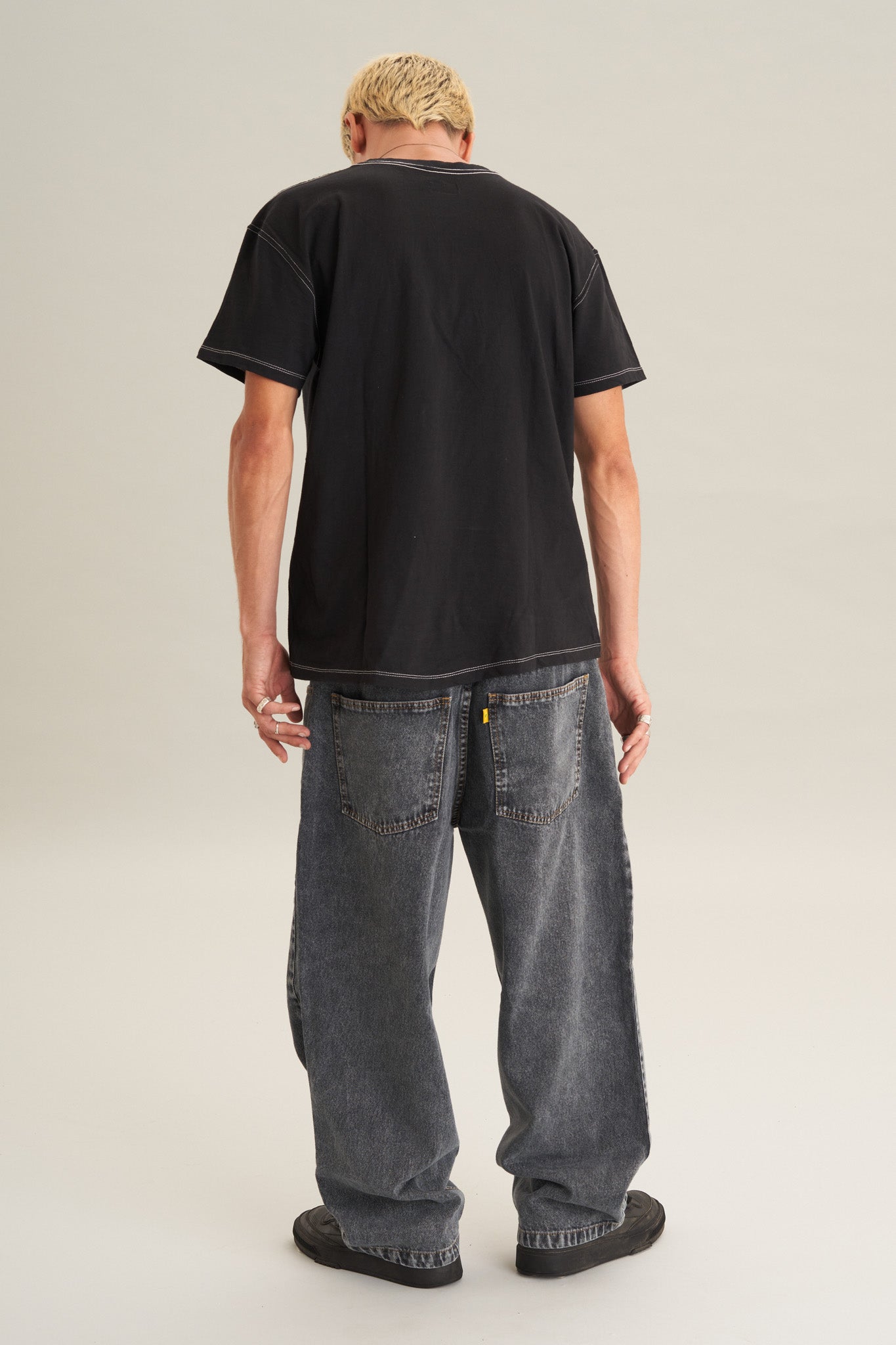 A lavagem Black revela um preto levemente desbotado, com nuances discretas que suavizam o tom e dão mais naturalidade ao denim.