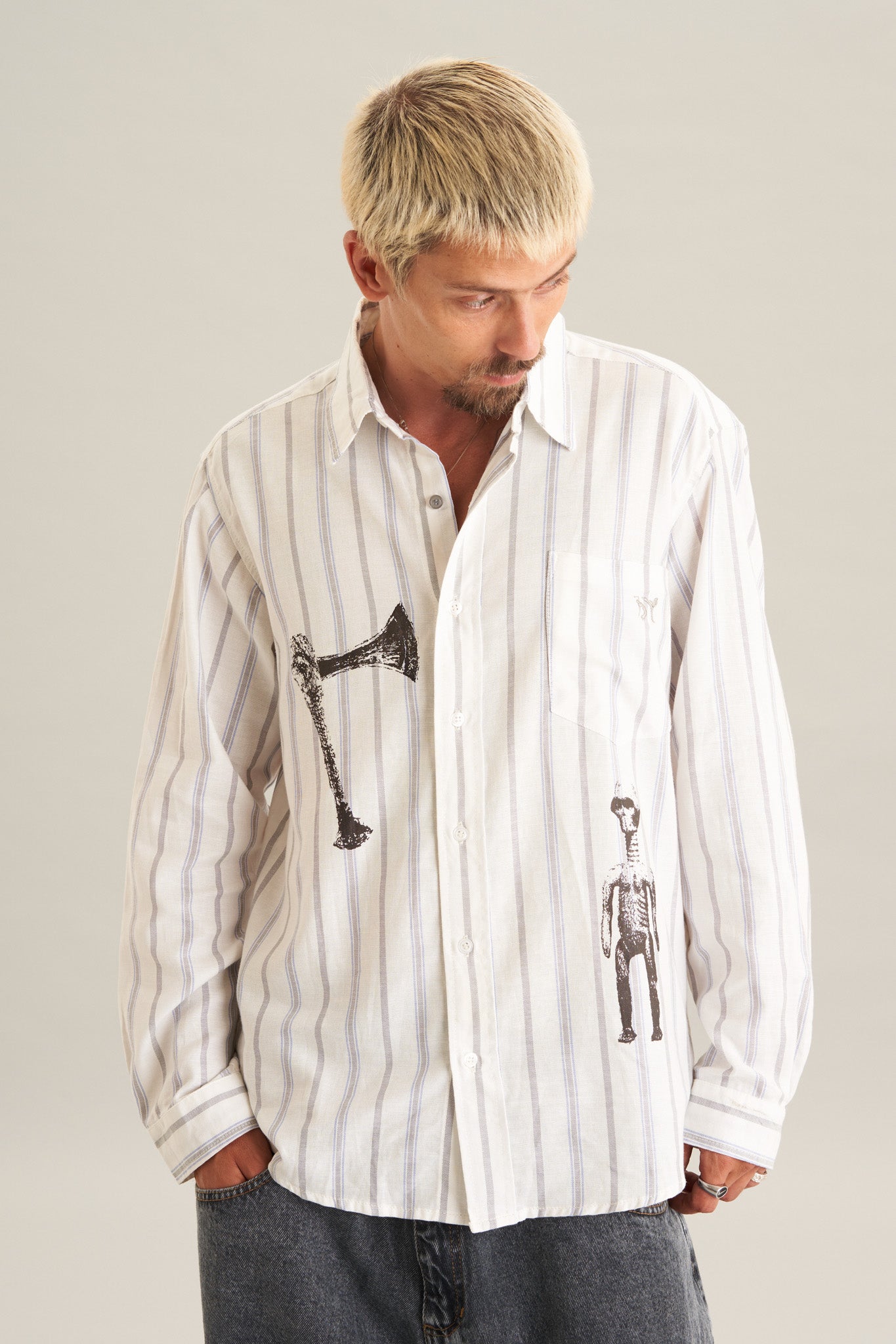 Uma camisa que une tradição e expressão. Com símbolos inspirados em culturas africanas, ela carrega histórias que atravessam o tempo e ganham novas formas no presente.