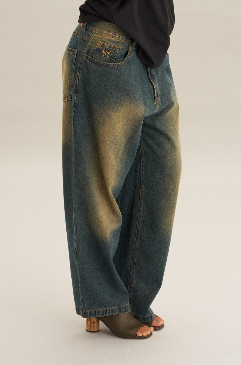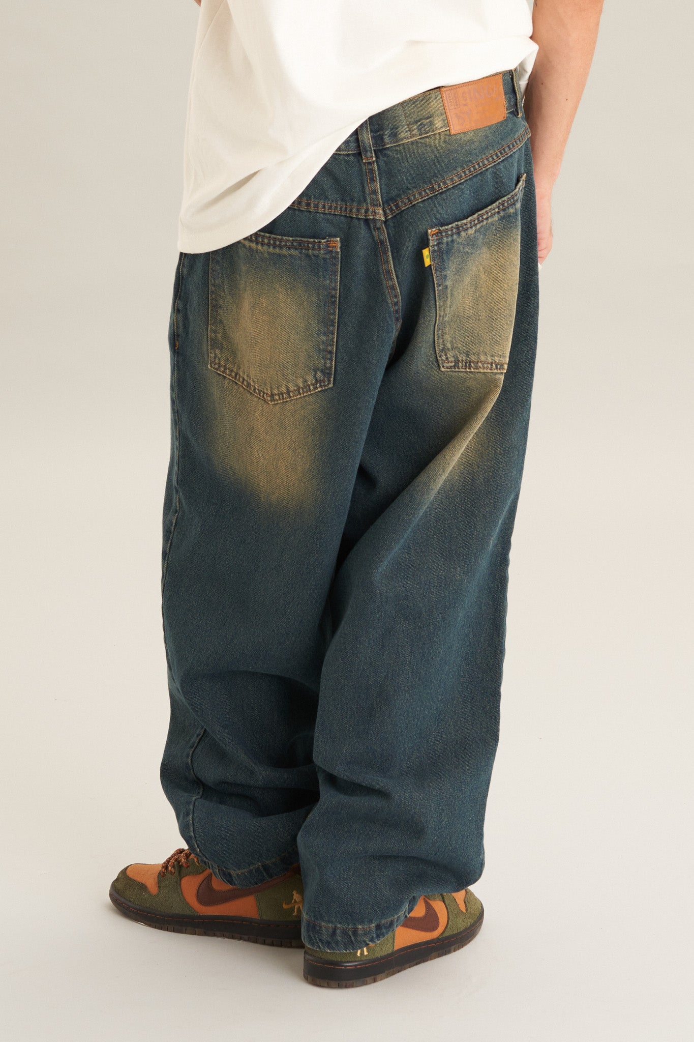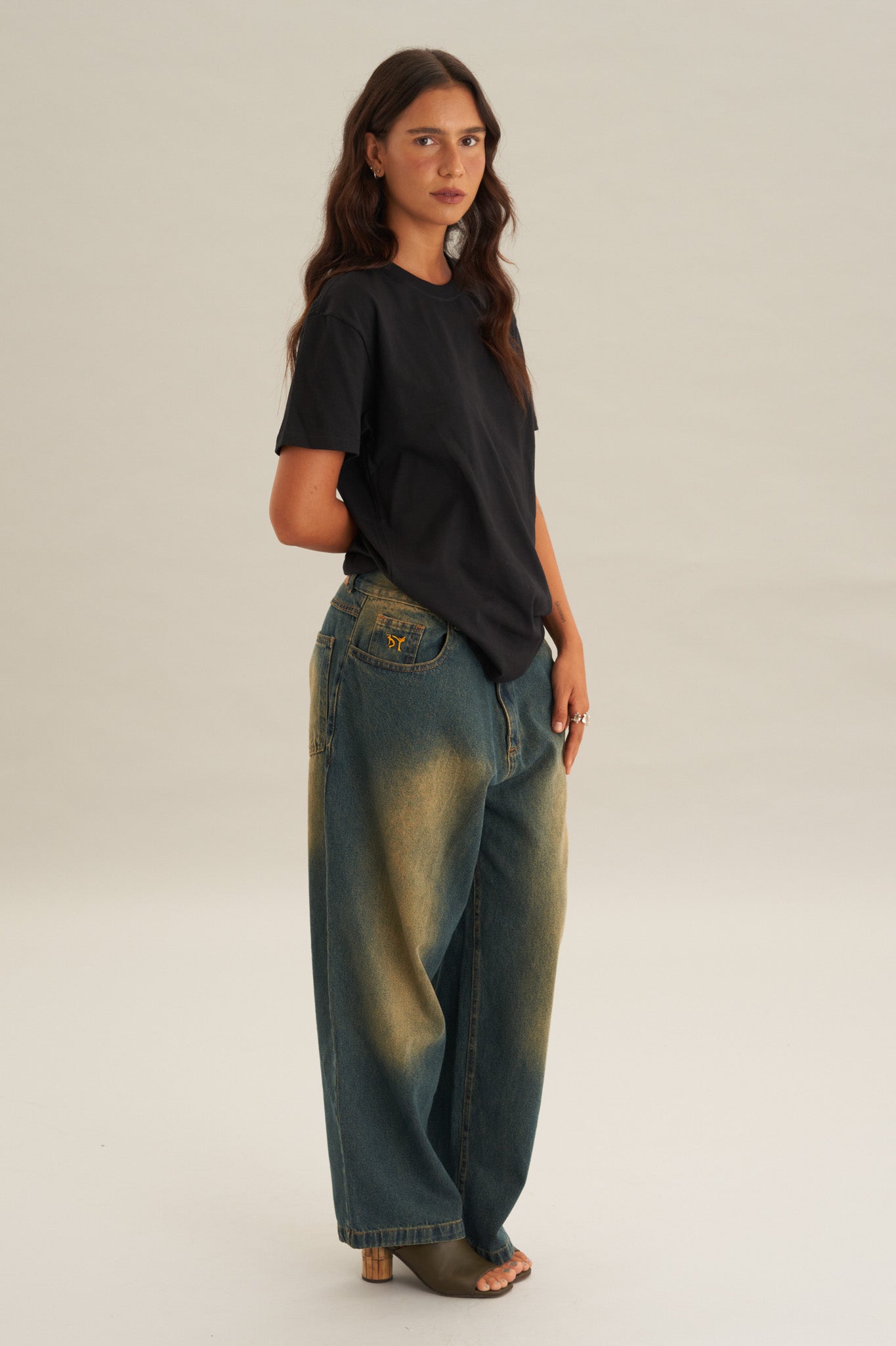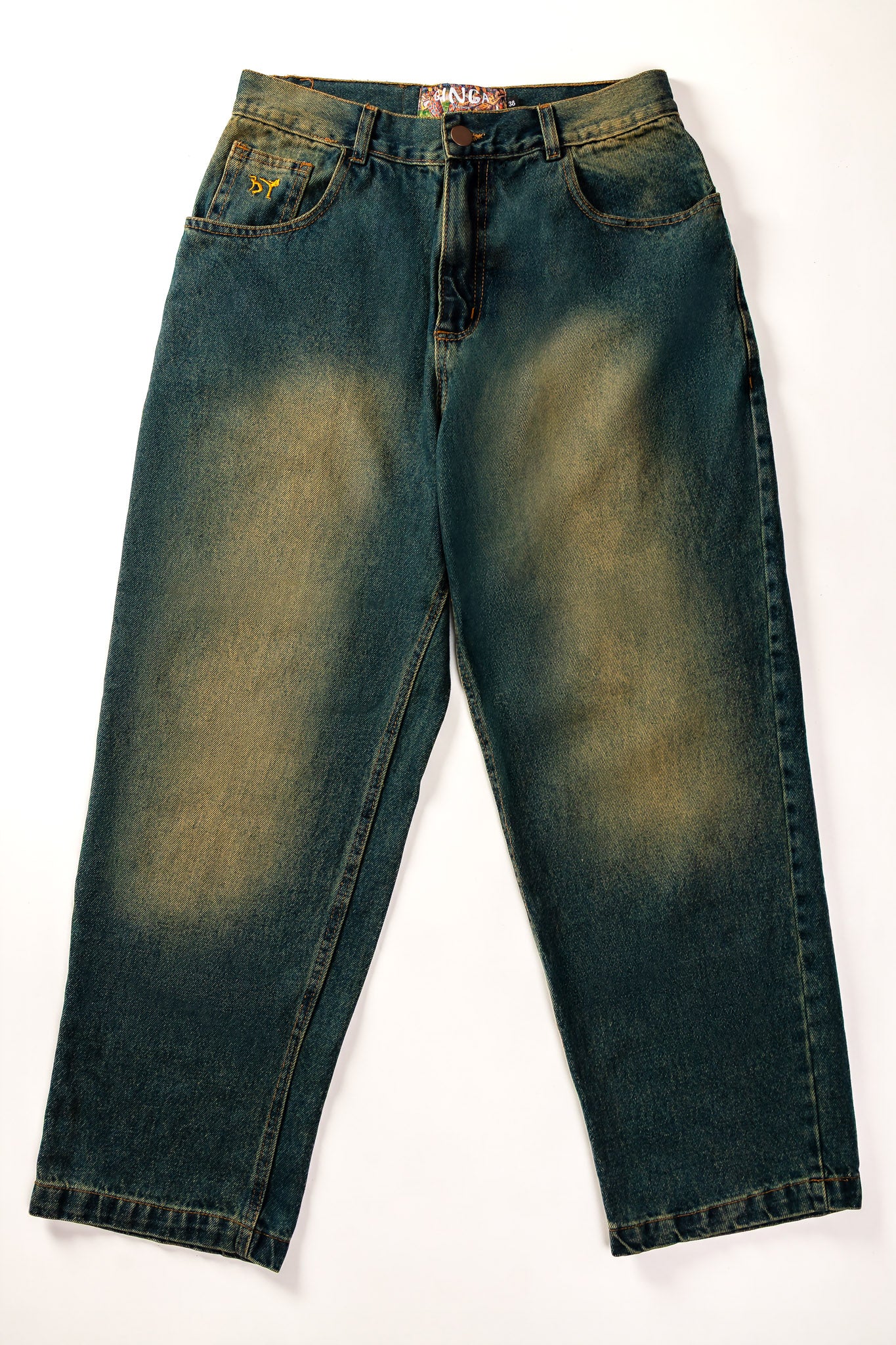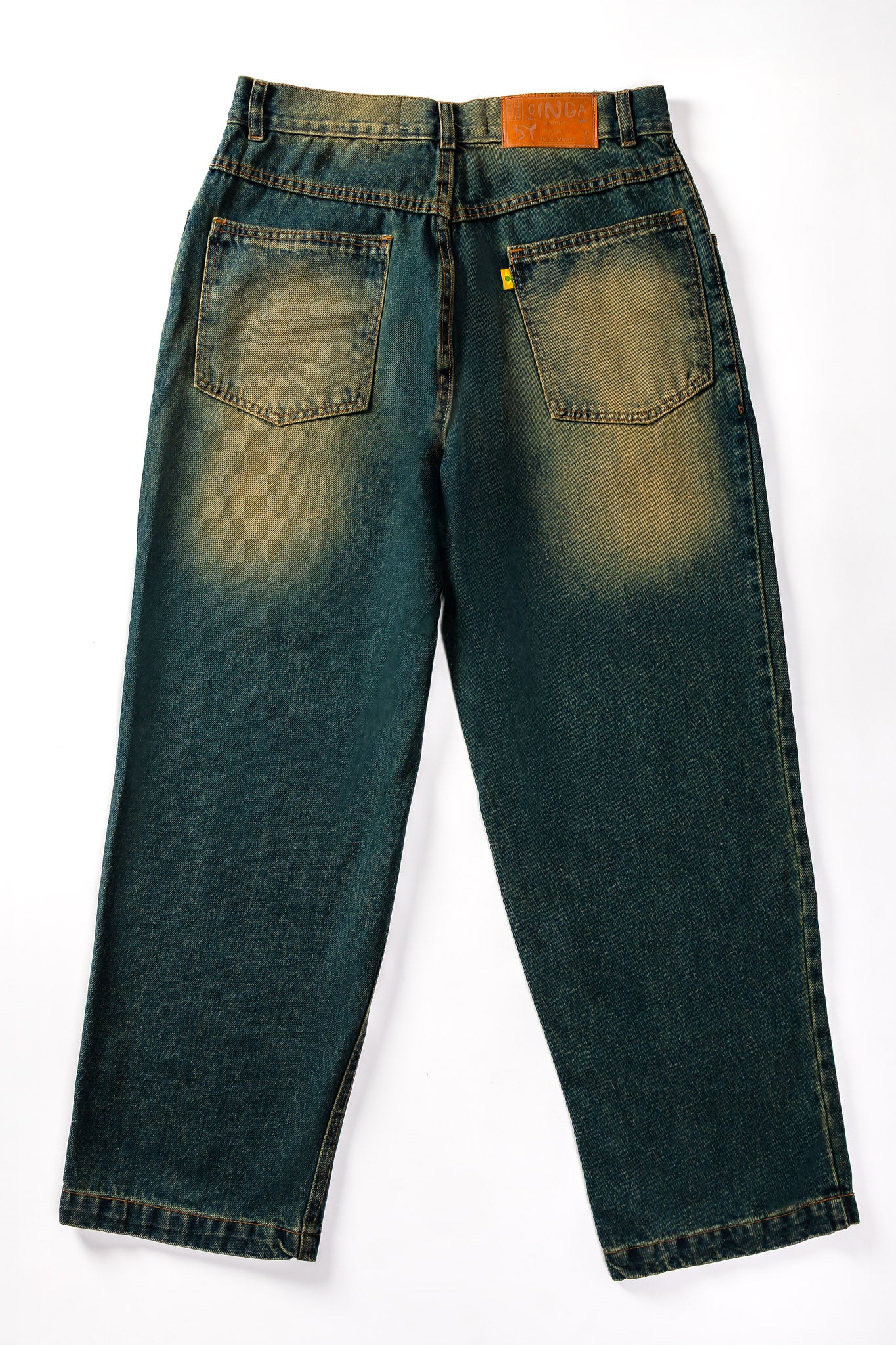 A lavagem Used Green traz um efeito levemente desgastado, com variações de tom e marcas sutis que dão profundidade ao jeans. O visual remete ao denim já vivido, com aparência natural e autêntica.