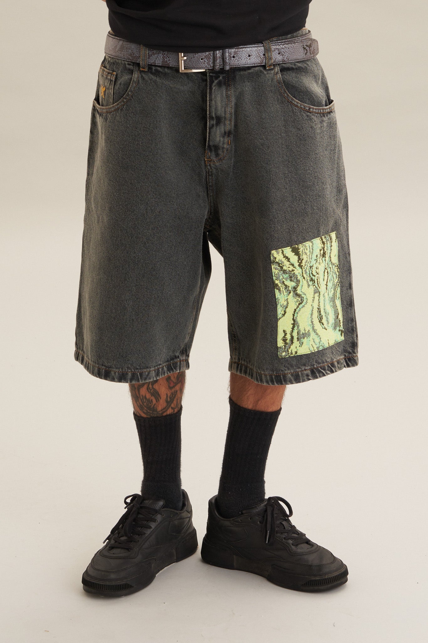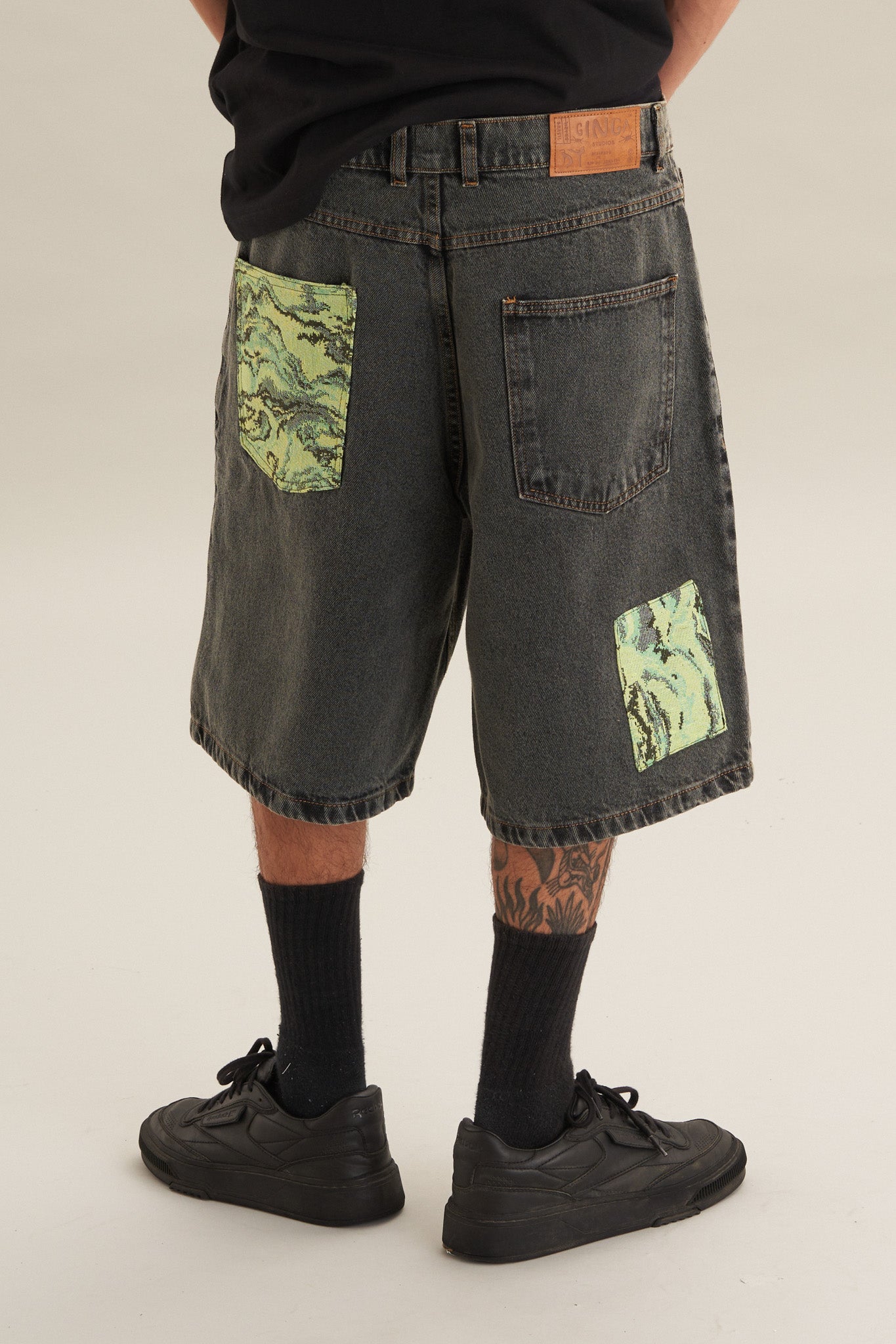 Nossos shorts "CAPOEIRA" unisex na lavagem Black com patchwork em jacquard oferecem uma modelagem exclusiva, relaxada e solta, que transmite confiança e estilo sem esforço.